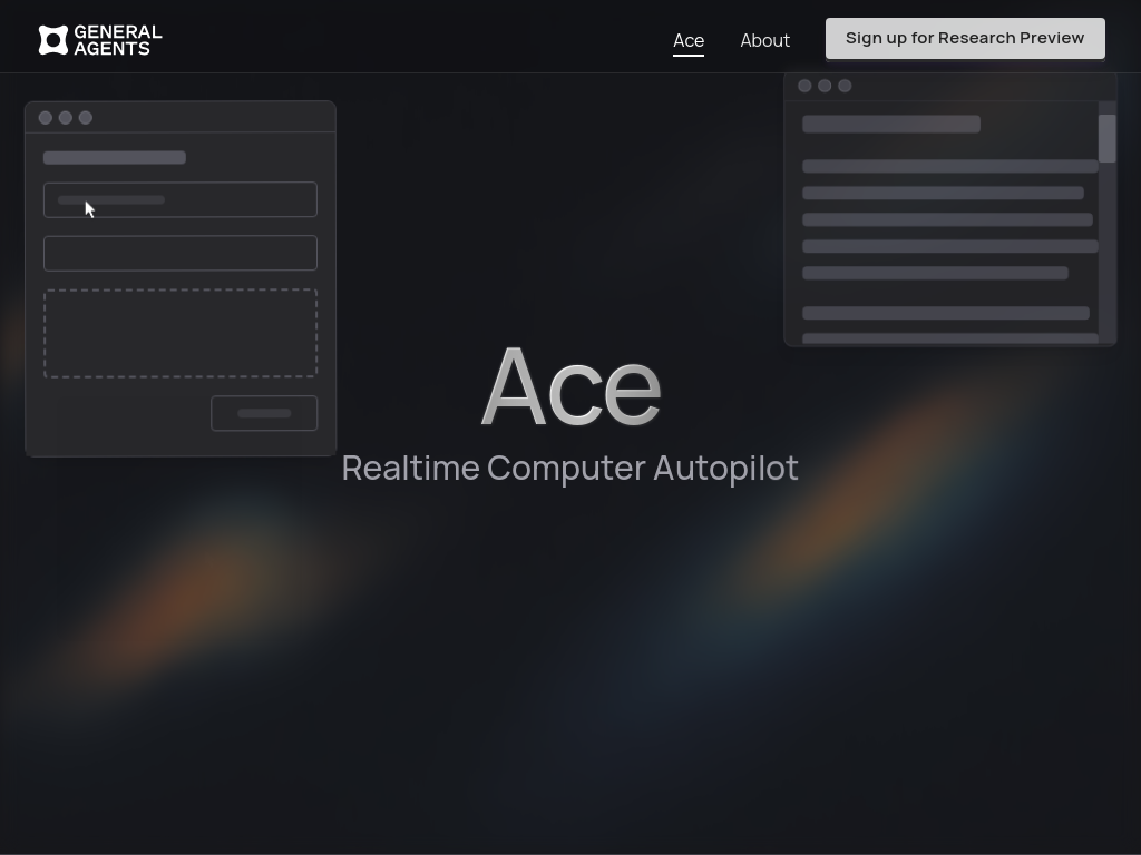 Ace is a computer autopilot that performs tasks on your desktop using your mouse and keyboard. It outperforms other models on a suite of computer use tasks and is exceptionally fast, capable of performing many tasks in superhuman time. Ace is trained by a team of software specialists and domain experts on over a million tasks, and while it is still learning and can make mistakes, it is expected to become more intelligent and capable as training resources increase.