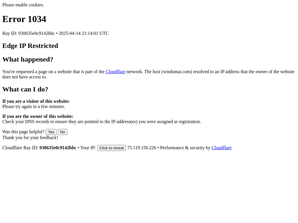 This page indicates that the requested website is part of the Cloudflare network and that the host resolved to an IP address that the owner does not have access to. It provides guidance for visitors and website owners on what actions to take in response to the error.