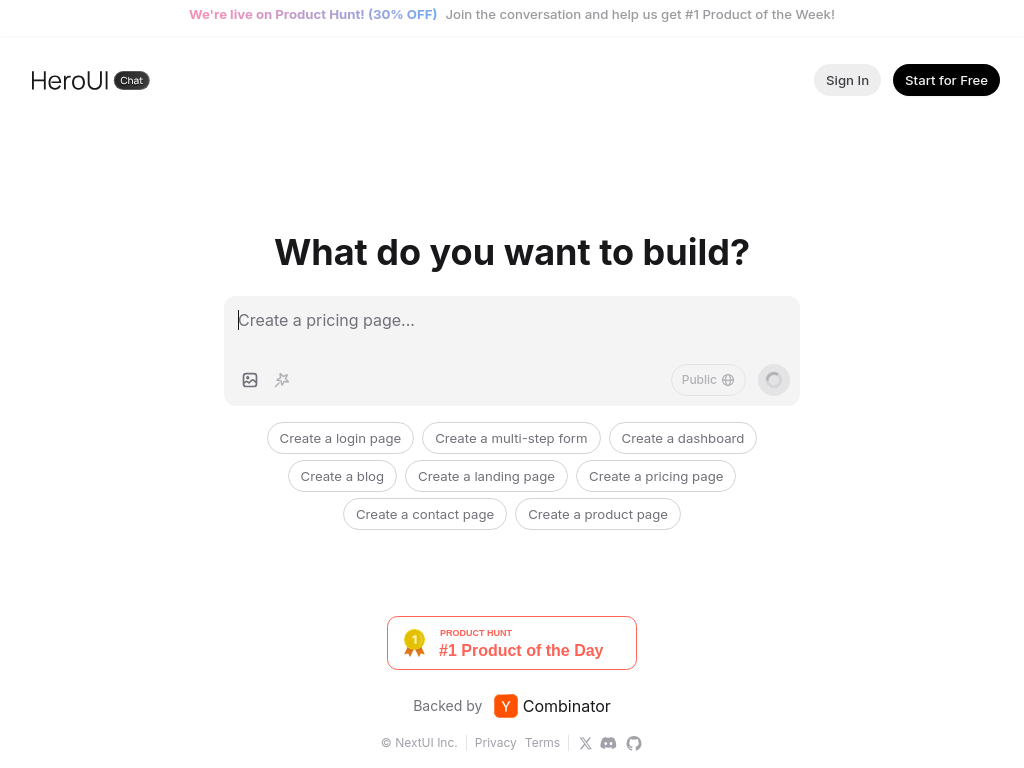 HeroUI Chat is a tool designed to help users generate beautiful user interfaces effortlessly. It offers a variety of templates and components that can be used to create different types of web pages, including login pages, multi-step forms, dashboards, blogs, landing pages, pricing pages, contact pages, and product pages.