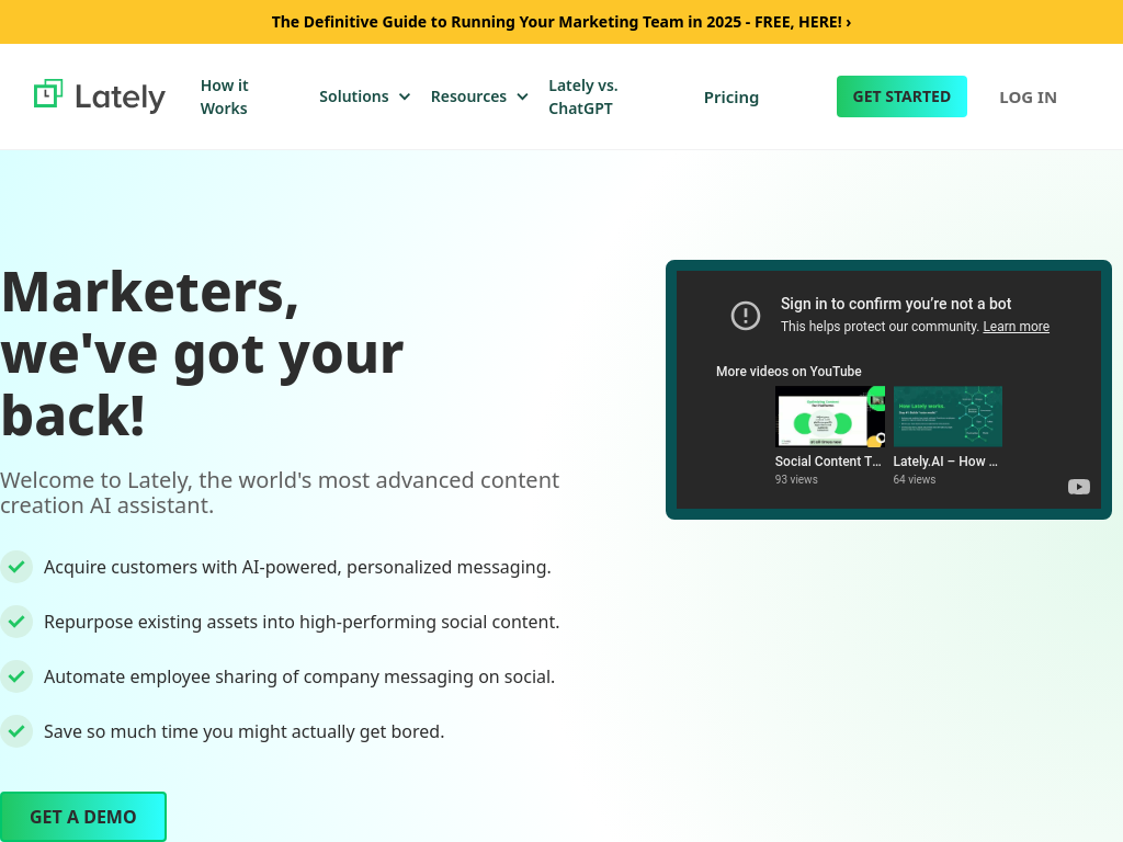 Lately is an AI-powered content creation and social media management platform that helps businesses generate, optimize, and distribute engaging content across multiple channels.
