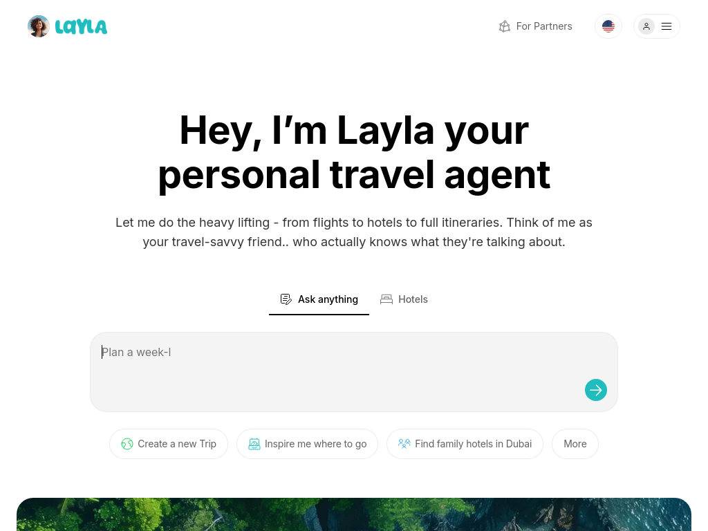 Layla is your personal travel agent that simplifies trip planning by handling everything from flights to hotels and full itineraries. It acts like a knowledgeable friend, providing personalized destination ideas and helping you create a customized travel plan, making the process of planning vacations easier and more enjoyable.