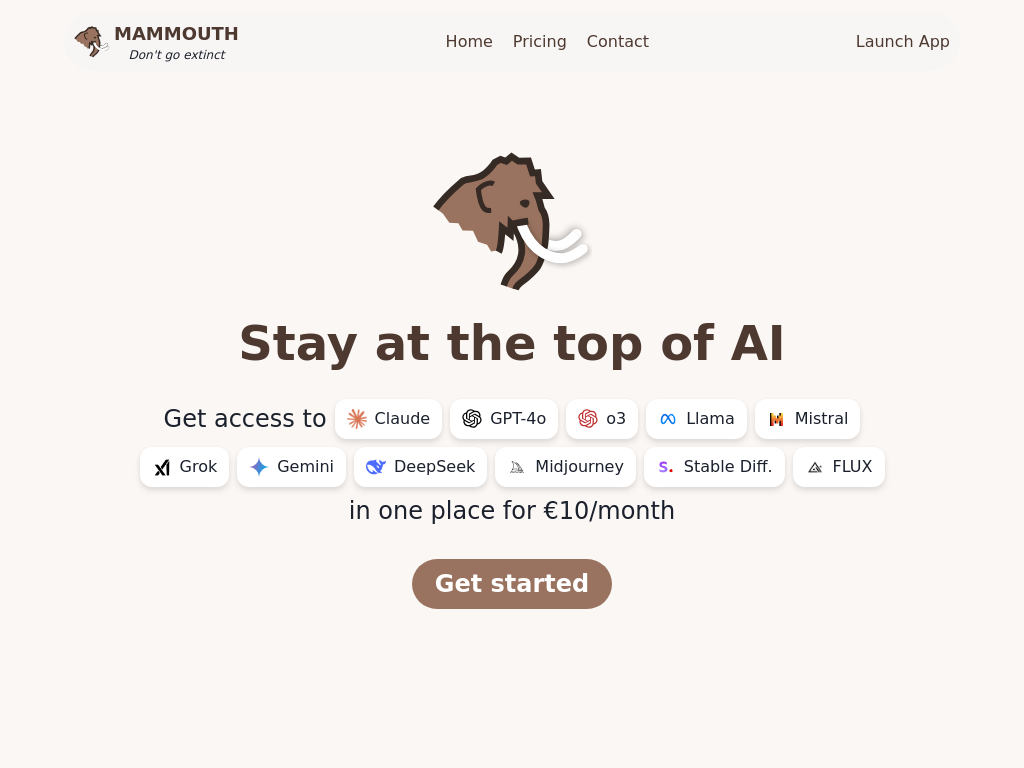 Mammouth is an AI platform that provides access to a variety of industry-leading AI models for a monthly subscription. Users can utilize models like GPT-4, Claude, Gemini, and image generators such as Midjourney and Stable Diffusion, all in one place. The service is designed to enhance AI workflows by allowing users to switch between models easily and efficiently. It also offers features like project management, image uploads, and real-time voice conversations with AI. With a focus on user experience, Mammouth aims to make advanced AI accessible and convenient for everyone.