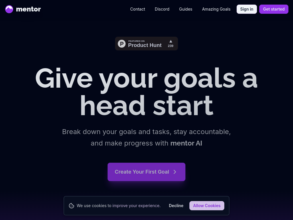 Mentor is an AI-driven platform that helps users break down their goals into manageable tasks, providing guidance and accountability to ensure consistent progress. It simplifies the goal-setting process by creating personalized action plans and offers tools for tracking progress and staying motivated.