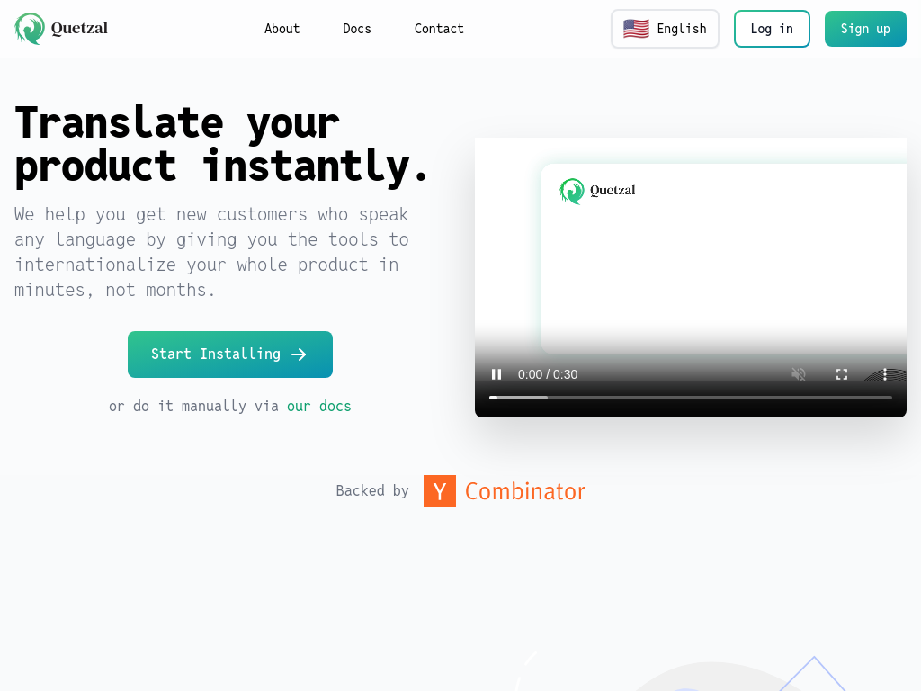 Quetzal provides tools to help businesses internationalize their products quickly, allowing them to reach new customers who speak any language. With features like instant translation, a user-friendly dashboard, and support for multiple languages, Quetzal simplifies the localization process for developers.
