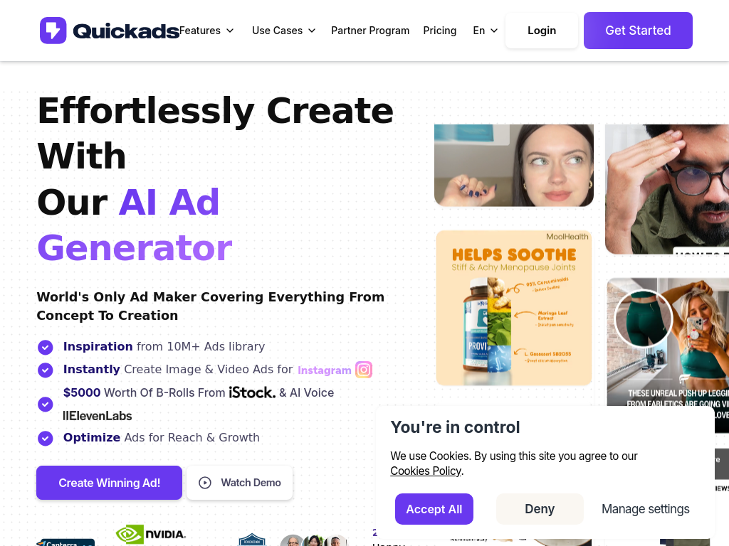 Quickads is an AI-powered platform that simplifies the ad creation process by providing access to a vast library of over 10 million ads. Users can research and analyze competitors’ ad strategies, create image and video ads quickly, and publish them effortlessly across various platforms. The platform offers features like virtual product photoshoots, AI-generated content, and optimization tools to enhance ad performance. With Quickads, businesses can streamline their marketing efforts, save time, and improve their return on ad spend.